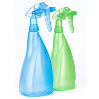 Pulverizador de gatilho em 2 cores (verde e azul) de 1 litro de capacidade para uso em interiores, terraços e varandas. Muito utilizado também em estética automotiva onde auxilia na diluição dos produtos e lavagem dos veículos.